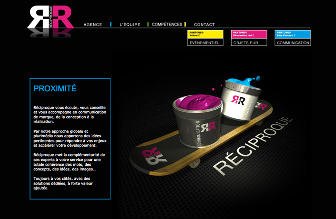 Spécialisée dans le domaine de la communication, l'agence Réciproque propose des solutions adéquates à ses clients (stratégie de communication, plan média, refonte de charte graphique, achat d'espaces, objets publicitaires, organisation de prestations événementielles…)